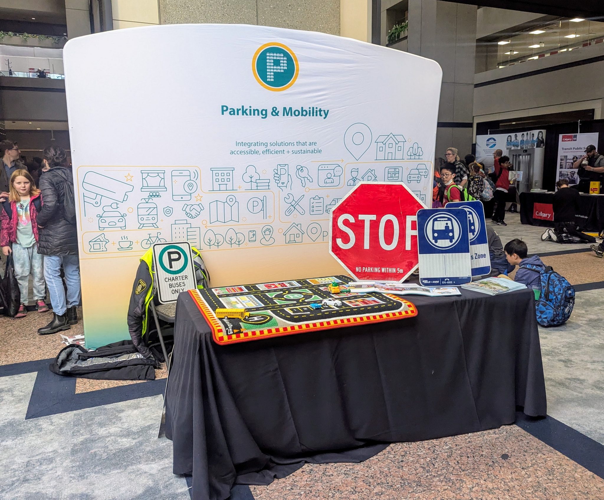 Students at our booth participated in engaging, hands-on activities that made learning about parking safety fun and memorable! A giant play mat re-created real-world parking situations, letting students maneuver miniature cars through schools, neighbourhoods and city streets. Using this interactive approach helped the kids learn how parking signs and rules enhance public safety, maintain traffic flow and uphold community standards.